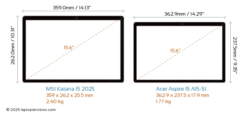 ThunderboltNeither Katana 15 2025 nor Aspire 15 A15-51 has Thunderbolt port.