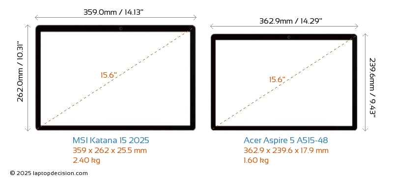 ThunderboltNeither Katana 15 2025 nor Aspire 5 A515-48 has Thunderbolt port.