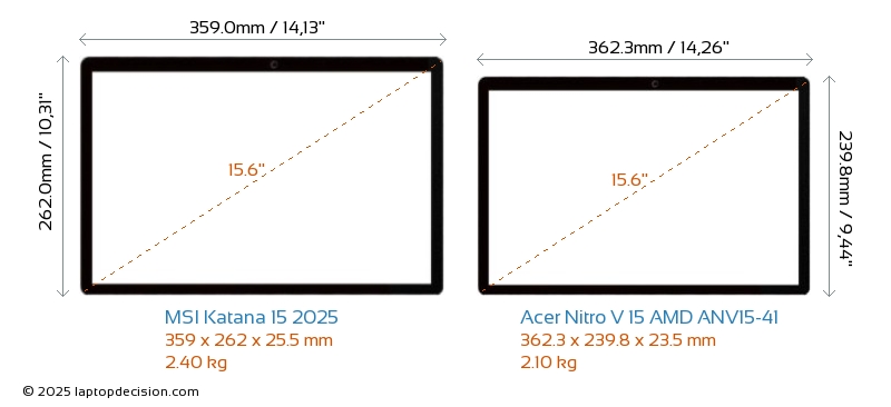 Wifi Katana 15 2025 features a more advanced Wi-Fi standard v6E, providing faster and more reliable wireless connections compared to Nitro V 15 AMD ANV15-41 (v6).