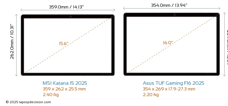 USBBoth Katana 15 2025 and TUF Gaming F16 2025 feature 3x USB 3.2 USB-A ports.Both Katana 15 2025 and TUF Gaming F16 2025 have USB Type-C ports. Katana 15 2025 has 1x USB 3.2 USB Type-C ports, while TUF Gaming F16 2025 has 2x USB 3.2 USB Type-C ports.