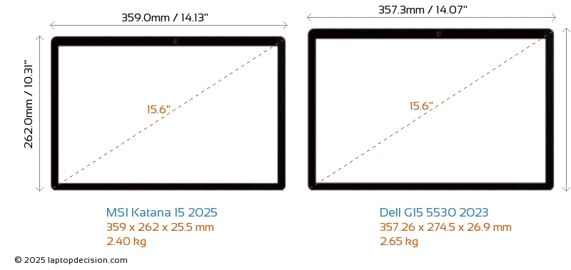 Audio JackBoth Katana 15 2025 and G15 5530 2023 are equipped with a 3.5mm Audio Jack, providing seamless connection to headphones and speakers.