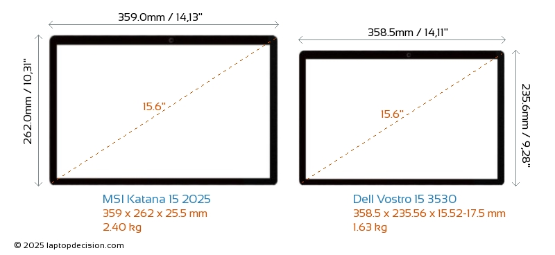 USBBoth Katana 15 2025 and Vostro 15 3530 have USB-A ports. Katana 15 2025 has 3x USB 3.2 USB-A ports, while Vostro 15 3530 has 2x USB 3.2 USB-A ports.Both Katana 15 2025 and Vostro 15 3530 feature 1x USB 3.2 USB Type-C ports.