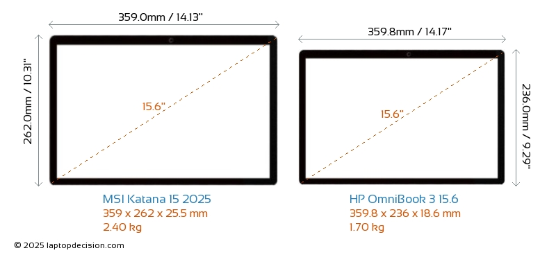 Wifi Katana 15 2025 features a more advanced Wi-Fi standard v6E, providing faster and more reliable wireless connections compared to OmniBook 3 15.6 (v6).