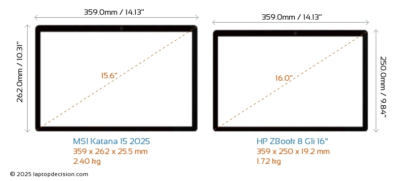 HDMIBoth Katana 15 2025 and ZBook 8 G1i 16" feature an HDMI port (1x HDMI 2.1) for connecting to external monitors.