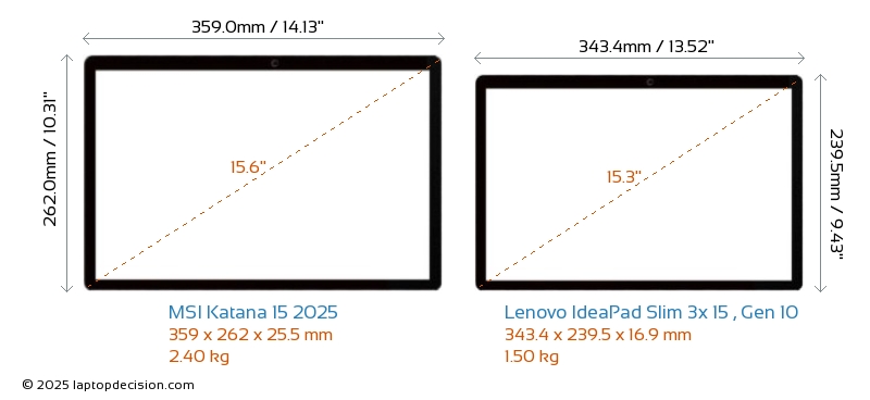 HDMIBoth Katana 15 2025 and IdeaPad Slim 3x 15 , Gen 10 feature an HDMI port. Katana 15 2025 offers 1x HDMI 2.1, while IdeaPad Slim 3x 15 , Gen 10 offers 1x HDMI 1.4.