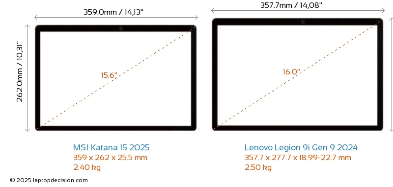 USBBoth Katana 15 2025 and Legion 9i Gen 9 2024 have USB-A ports. Katana 15 2025 has 3x USB 3.2 USB-A ports, while Legion 9i Gen 9 2024 has 2x USB 3.2 USB-A ports.Both Katana 15 2025 and Legion 9i Gen 9 2024 have USB Type-C ports. Katana 15 2025 has 1x USB 3.2 USB Type-C ports, while Legion 9i Gen 9 2024 has 3x USB 4.0 USB Type-C ports.