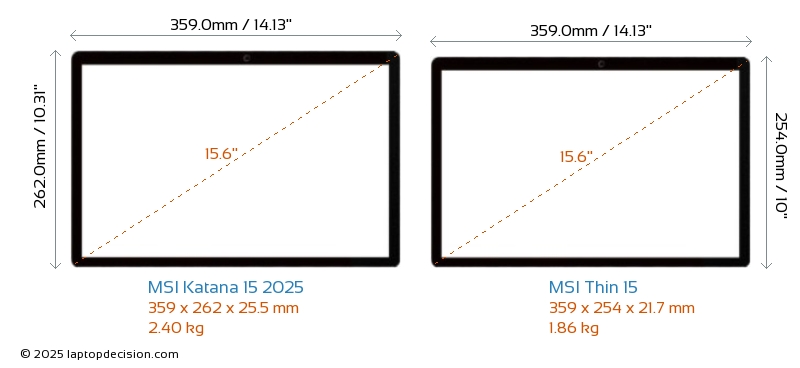 USBBoth Katana 15 2025 and Thin 15 feature 3x USB 3.2 USB-A ports.Both Katana 15 2025 and Thin 15 feature 1x USB 3.2 USB Type-C ports.