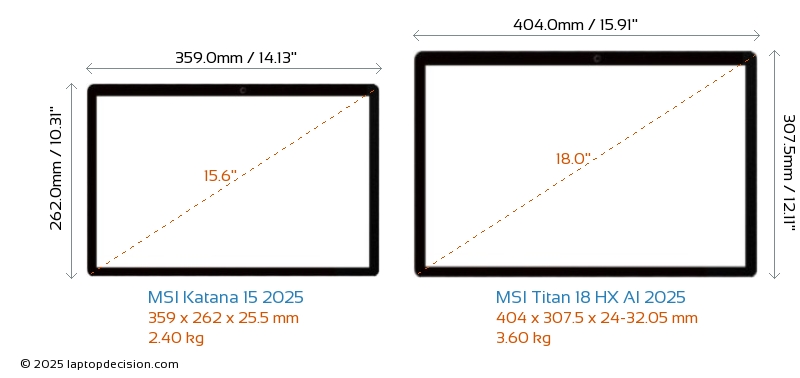 HDMIBoth Katana 15 2025 and Titan 18 HX AI 2025 feature an HDMI port (1x HDMI 2.1) for connecting to external monitors.