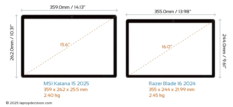 HDMIBoth Katana 15 2025 and Blade 16 2024 feature an HDMI port (1x HDMI 2.1) for connecting to external monitors.