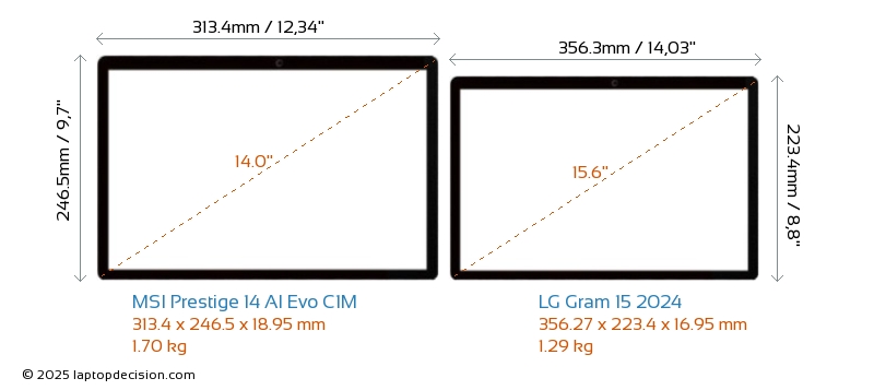 SD Card Reader Gram 15 2024 is equipped with an SD Card Reader for easy access to memory cards. Prestige 14 AI Evo C1M does not have an SD Card Reader.