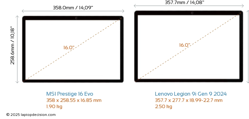 ThunderboltBoth Prestige 16 Evo and Legion 9i Gen 9 2024 are equipped with Thunderbolt 4 ports.
