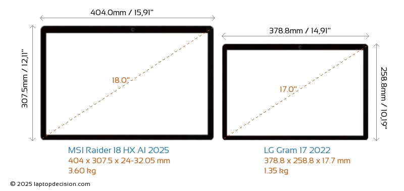 HDMIBoth Raider 18 HX AI 2025 and Gram 17 2022 feature an HDMI port. Raider 18 HX AI 2025 offers 1x HDMI 2.1, while Gram 17 2022 offers 1x HDMI 2.0.