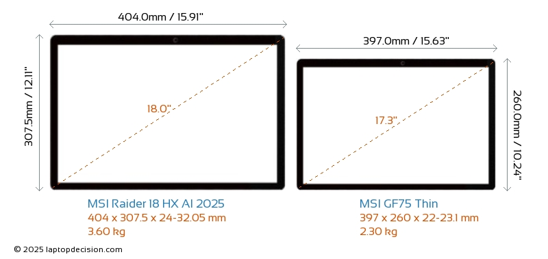 HDMIBoth Raider 18 HX AI 2025 and GF75 Thin feature an HDMI port. Raider 18 HX AI 2025 offers 1x HDMI 2.1, while GF75 Thin offers 1x HDMI 2.0.
