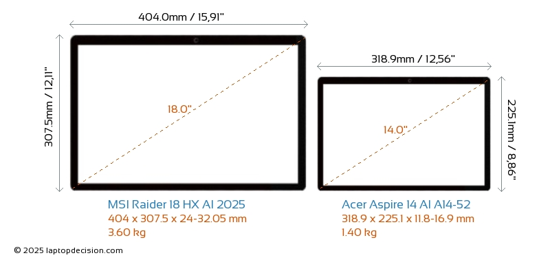 HDMIBoth Raider 18 HX AI 2025 and Aspire 14 AI A14-52 feature an HDMI port (1x HDMI 2.1) for connecting to external monitors.