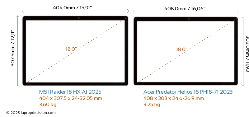 HDMIBoth Raider 18 HX AI 2025 and Predator Helios 18 PH18-71 2023 feature an HDMI port (1x HDMI 2.1) for connecting to external monitors.