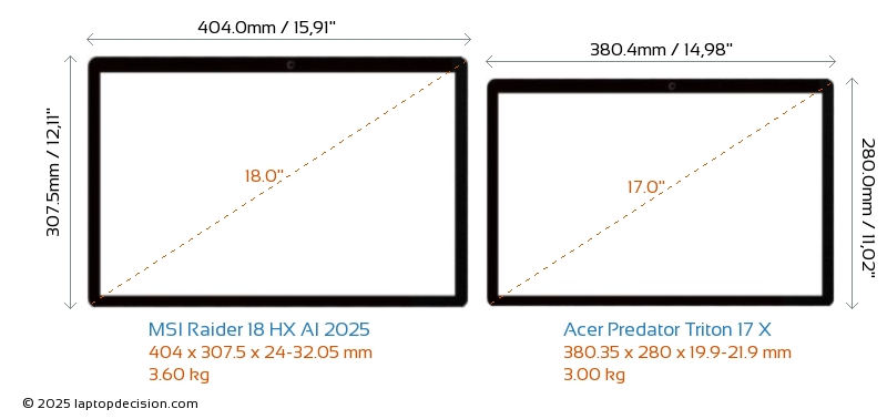 HDMIBoth Raider 18 HX AI 2025 and Predator Triton 17 X feature an HDMI port (1x HDMI 2.1) for connecting to external monitors.