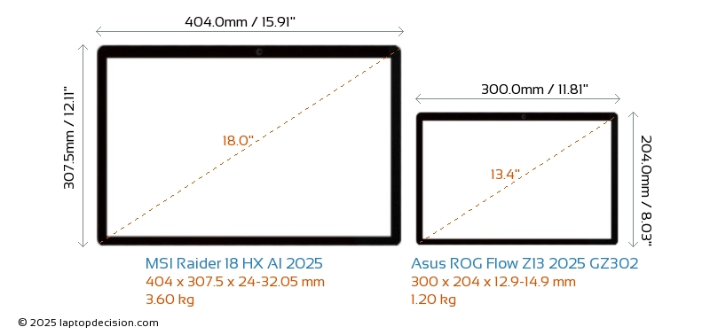 HDMIBoth Raider 18 HX AI 2025 and ROG Flow Z13 2025 GZ302 feature an HDMI port (1x HDMI 2.1) for connecting to external monitors.