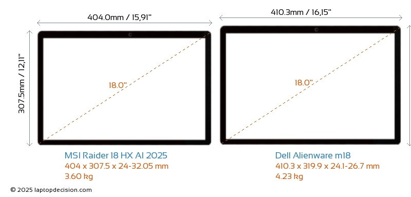 Wifi Raider 18 HX AI 2025 features a more advanced Wi-Fi standard v7, providing faster and more reliable wireless connections compared to Alienware m18 (v6E).