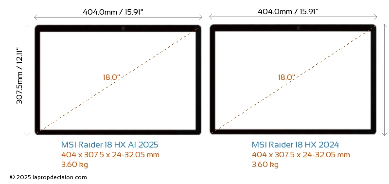 HDMIBoth Raider 18 HX AI 2025 and Raider 18 HX 2024 feature an HDMI port (1x HDMI 2.1) for connecting to external monitors.