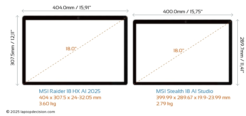 HDMIBoth Raider 18 HX AI 2025 and Stealth 18 AI Studio feature an HDMI port (1x HDMI 2.1) for connecting to external monitors.
