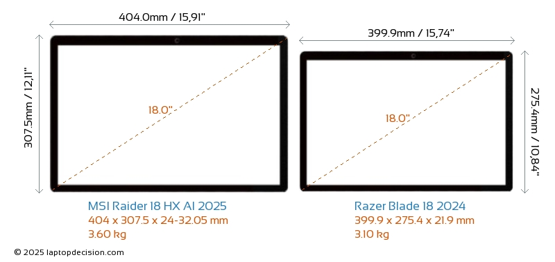 USBBoth Raider 18 HX AI 2025 and Blade 18 2024 feature 3x USB 3.2 USB-A ports.Both Raider 18 HX AI 2025 and Blade 18 2024 feature 2x USB 4.0 USB Type-C ports.