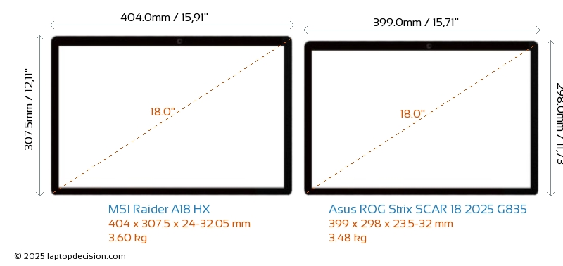 USBBoth Raider A18 HX and ROG Strix SCAR 18 2025 G835 feature 3x USB 3.2 USB-A ports.Both Raider A18 HX and ROG Strix SCAR 18 2025 G835 have USB Type-C ports. Raider A18 HX has 1x USB 3.2 USB Type-C ports, while ROG Strix SCAR 18 2025 G835 has 2x USB 4.0 USB Type-C ports.