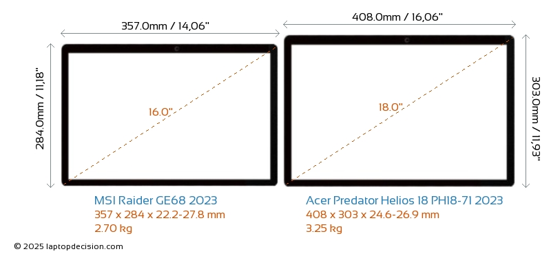 HDMIBoth Raider GE68 2023 and Predator Helios 18 PH18-71 2023 feature an HDMI port (1x HDMI 2.1) for connecting to external monitors.