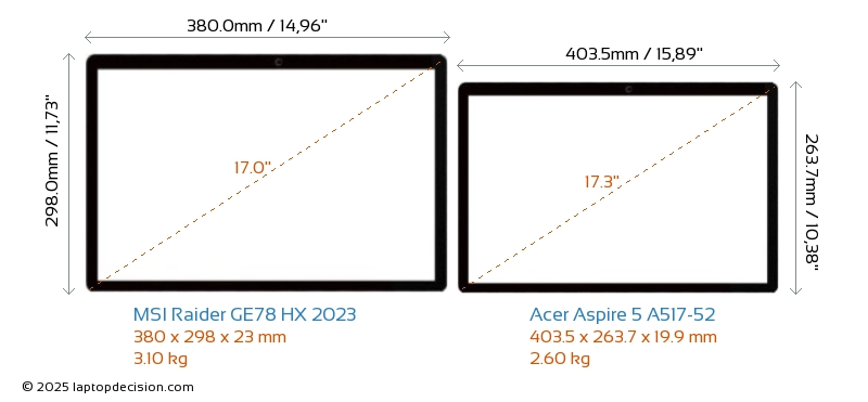 SD Card Reader Raider GE78 HX 2023 is equipped with an SD Card Reader for easy access to memory cards. Aspire 5 A517-52 does not have an SD Card Reader.