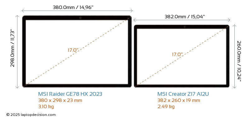 HDMIBoth Raider GE78 HX 2023 and Creator Z17 A12U feature an HDMI port (1x HDMI 2.1) for connecting to external monitors.