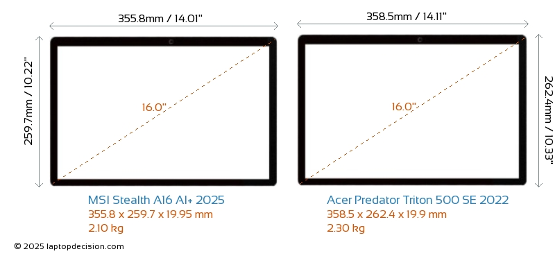 ThunderboltBoth Stealth A16 AI+ 2025 and Predator Triton 500 SE 2022 are equipped with Thunderbolt 4 ports.