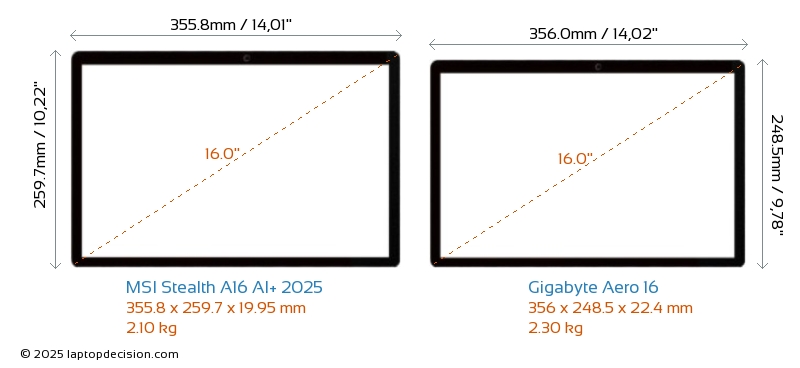 HDMI Stealth A16 AI+ 2025 features an HDMI port (1x HDMI 2.1) for connecting to external monitors. Aero 16 does not have an HDMI port.