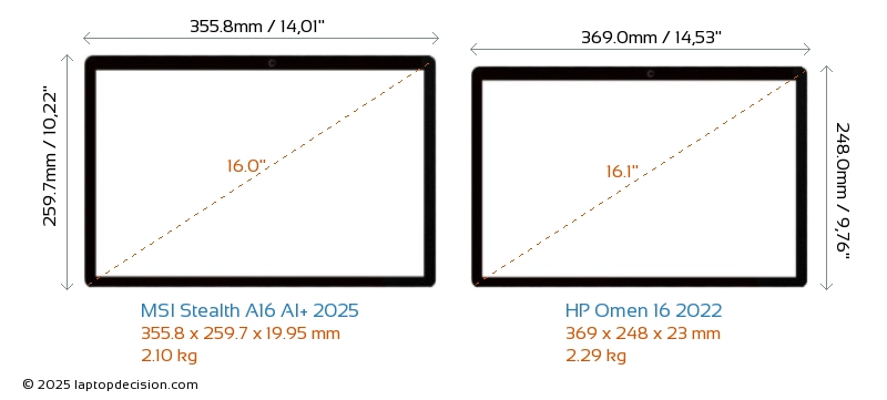 HDMIBoth Stealth A16 AI+ 2025 and Omen 16 2022 feature an HDMI port (1x HDMI 2.1) for connecting to external monitors.