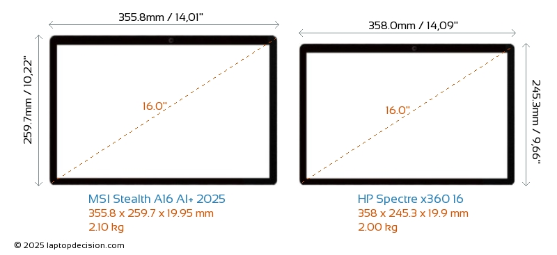 SD Card ReaderSpectre x360 16 is equipped with an SD Card Reader for easy access to memory cards. Stealth A16 AI+ 2025 does not have an SD Card Reader.