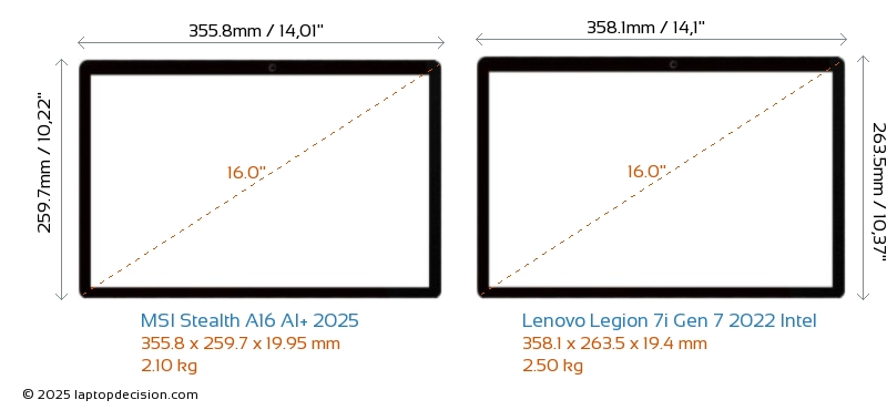 HDMIBoth Stealth A16 AI+ 2025 and Legion 7i Gen 7 2022 Intel feature an HDMI port (1x HDMI 2.1) for connecting to external monitors.