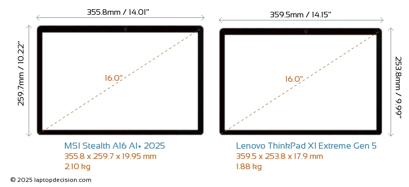 USBBoth Stealth A16 AI+ 2025 and ThinkPad X1 Extreme Gen 5 feature 2x USB 3.2 USB-A ports.Both Stealth A16 AI+ 2025 and ThinkPad X1 Extreme Gen 5 have USB Type-C ports. Stealth A16 AI+ 2025 has 1x USB 4.0 USB Type-C ports, while ThinkPad X1 Extreme Gen 5 has 2x USB 4.0 USB Type-C ports.