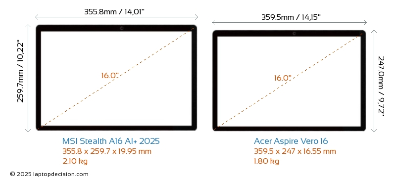 HDMIBoth Stealth A16 AI+ 2025 and Aspire Vero 16 feature an HDMI port (1x HDMI 2.1) for connecting to external monitors.