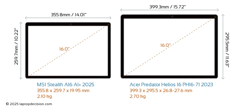 HDMIBoth Stealth A16 AI+ 2025 and Predator Helios 16 PH16-71 2023 feature an HDMI port (1x HDMI 2.1) for connecting to external monitors.