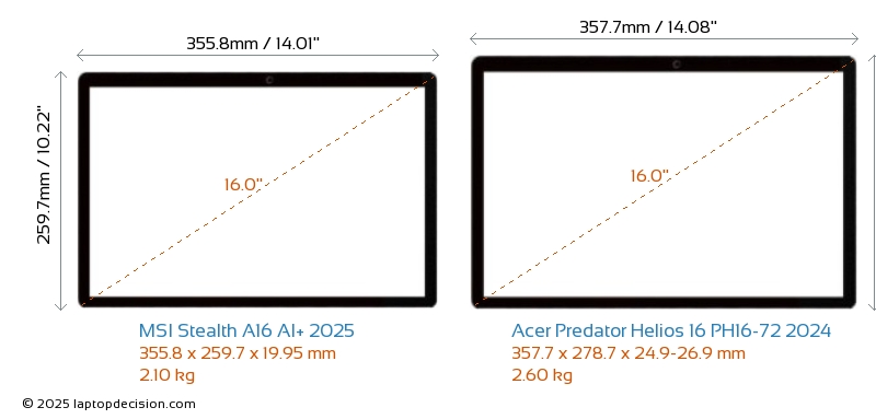 HDMIBoth Stealth A16 AI+ 2025 and Predator Helios 16 PH16-72 2024 feature an HDMI port (1x HDMI 2.1) for connecting to external monitors.