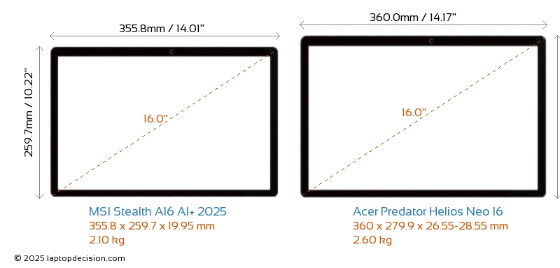 SD Card Reader Predator Helios Neo 16 is equipped with an SD Card Reader for easy access to memory cards. Stealth A16 AI+ 2025 does not have an SD Card Reader.