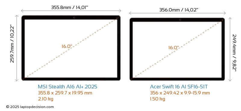 HDMIBoth Stealth A16 AI+ 2025 and Swift 16 AI SF16-51T feature an HDMI port (1x HDMI 2.1) for connecting to external monitors.