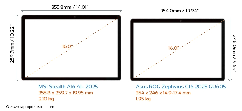 ThunderboltBoth Stealth A16 AI+ 2025 and ROG Zephyrus G16 2025 GU605 are equipped with Thunderbolt 4 ports.