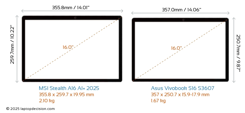 HDMIBoth Stealth A16 AI+ 2025 and Vivobook S16 S3607 feature an HDMI port (1x HDMI 2.1) for connecting to external monitors.