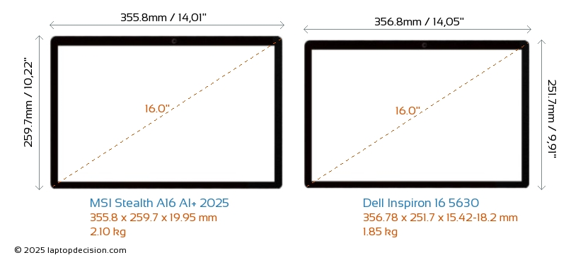 ThunderboltBoth Stealth A16 AI+ 2025 and Inspiron 16 5630 are equipped with Thunderbolt 4 ports.