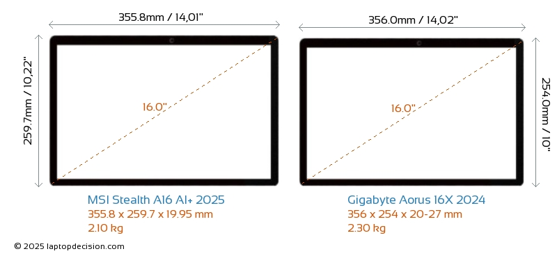 ThunderboltBoth Stealth A16 AI+ 2025 and Aorus 16X 2024 are equipped with Thunderbolt 4 ports.