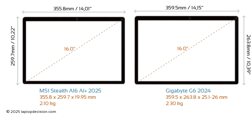 SD Card Reader G6 2024 is equipped with an SD Card Reader for easy access to memory cards. Stealth A16 AI+ 2025 does not have an SD Card Reader.