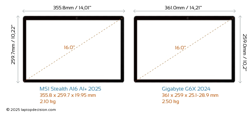 HDMIBoth Stealth A16 AI+ 2025 and G6X 2024 feature an HDMI port (1x HDMI 2.1) for connecting to external monitors.