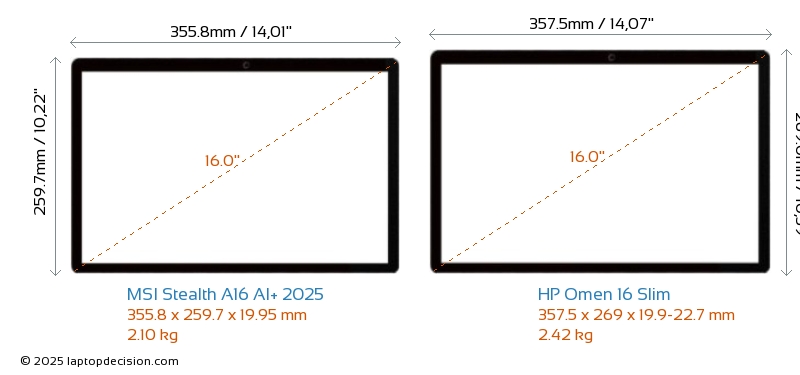 HDMIBoth Stealth A16 AI+ 2025 and Omen 16 Slim feature an HDMI port (1x HDMI 2.1) for connecting to external monitors.
