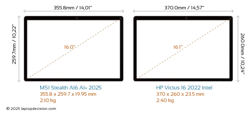 HDMIBoth Stealth A16 AI+ 2025 and Victus 16 2022 Intel feature an HDMI port (1x HDMI 2.1) for connecting to external monitors.