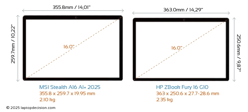HDMIBoth Stealth A16 AI+ 2025 and ZBook Fury 16 G10 feature an HDMI port (1x HDMI 2.1) for connecting to external monitors.