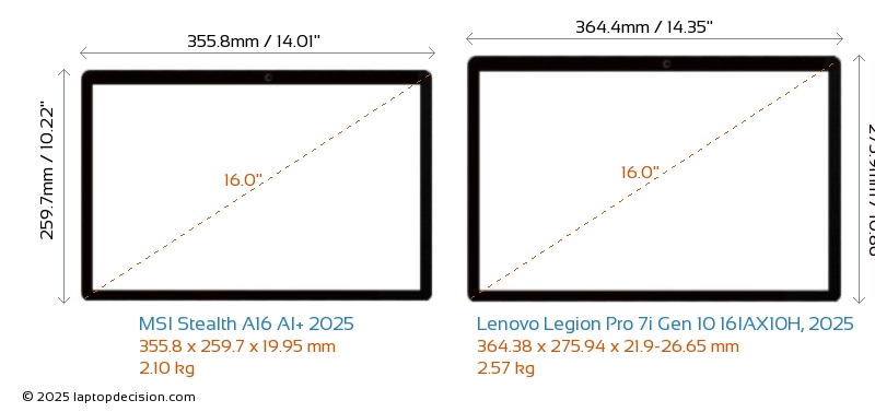 USBBoth Stealth A16 AI+ 2025 and Legion Pro 7i Gen 10 16IAX10H, 2025 have USB-A ports. Stealth A16 AI+ 2025 has 2x USB 3.2 USB-A ports, while Legion Pro 7i Gen 10 16IAX10H, 2025 has 3x USB 3.2 USB-A ports.Both Stealth A16 AI+ 2025 and Legion Pro 7i Gen 10 16IAX10H, 2025 have USB Type-C ports. Stealth A16 AI+ 2025 has 1x USB 4.0 USB Type-C ports, while Legion Pro 7i Gen 10 16IAX10H, 2025 has 2x USB 3.2 USB Type-C ports.